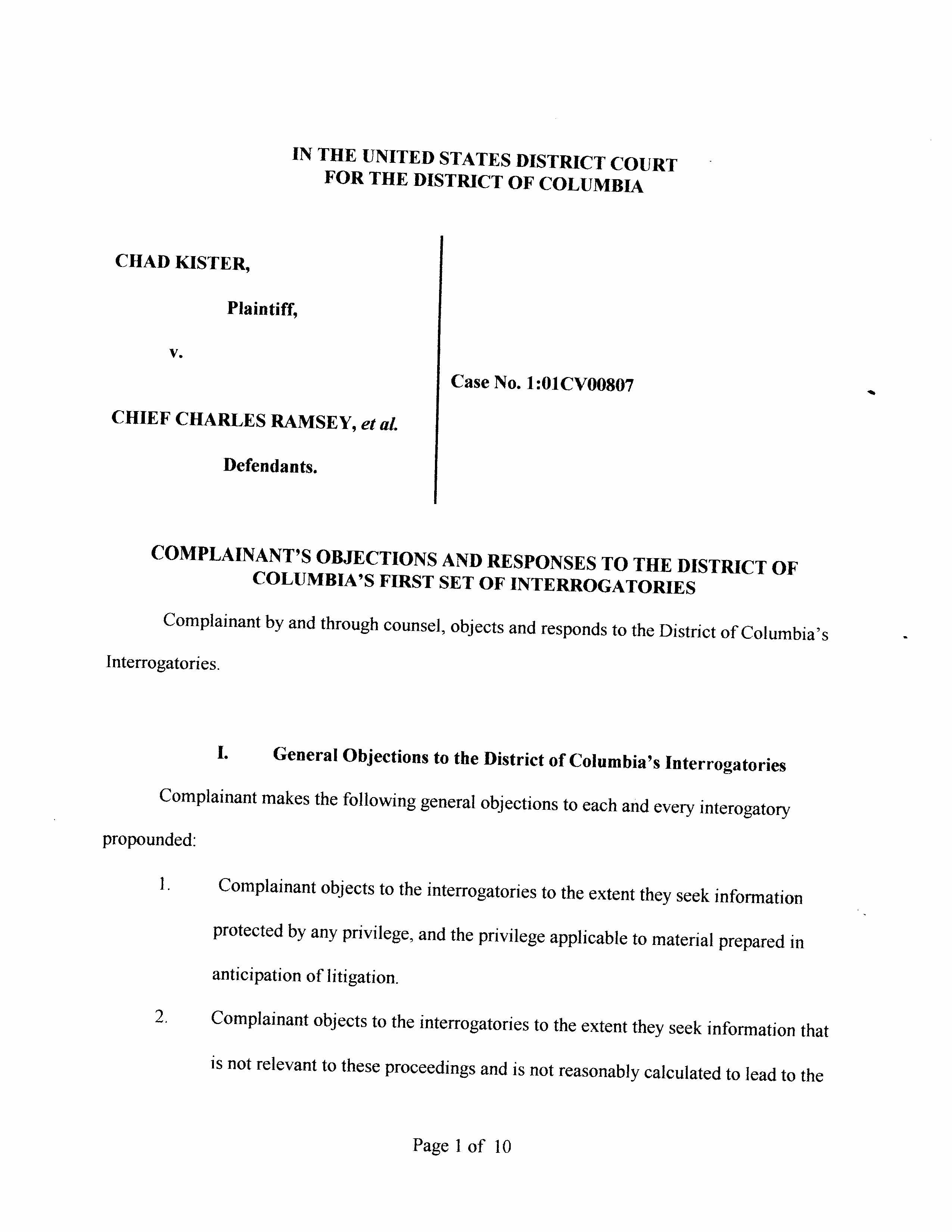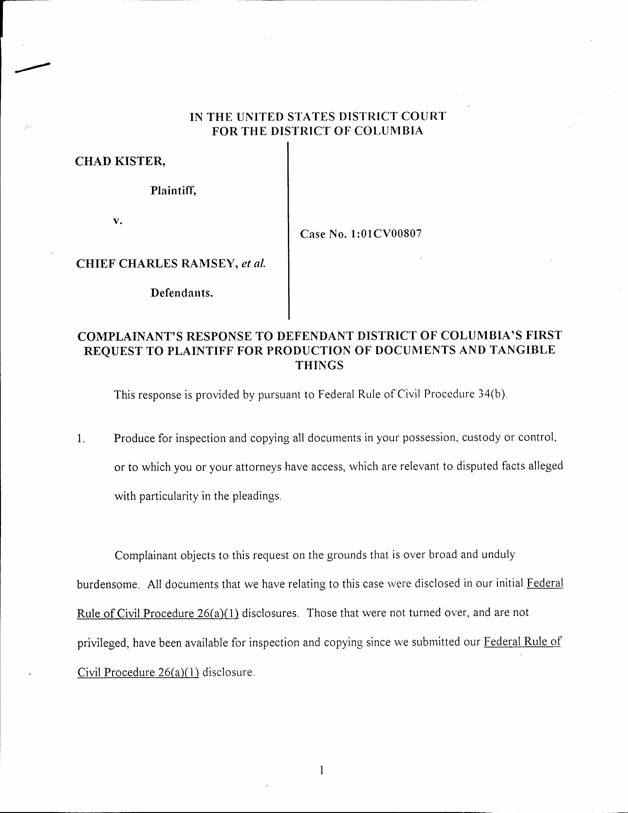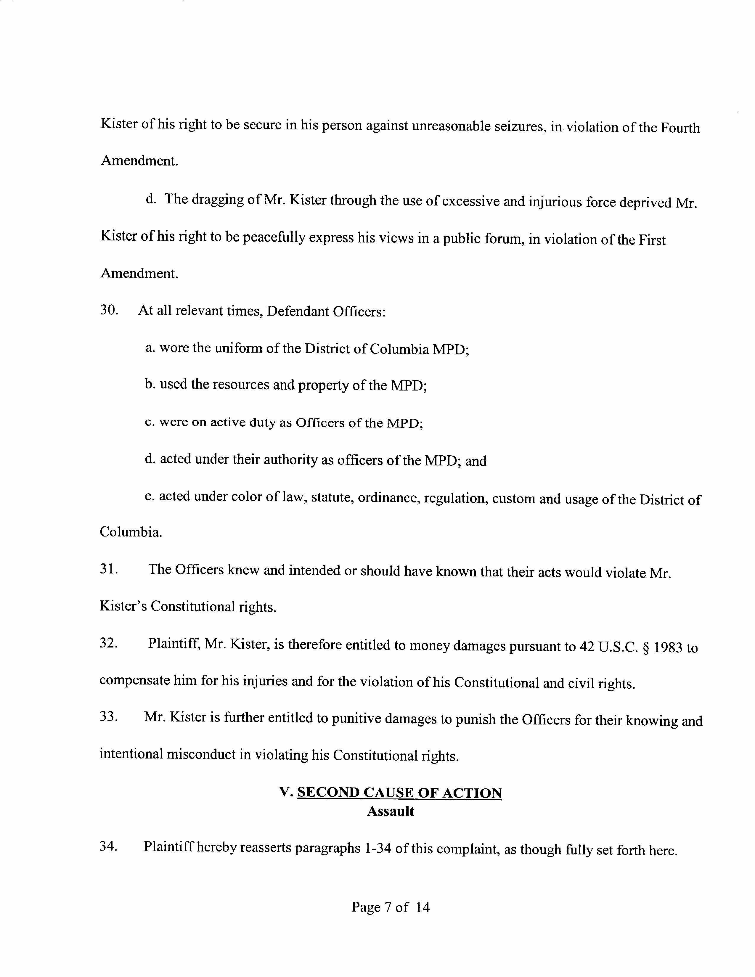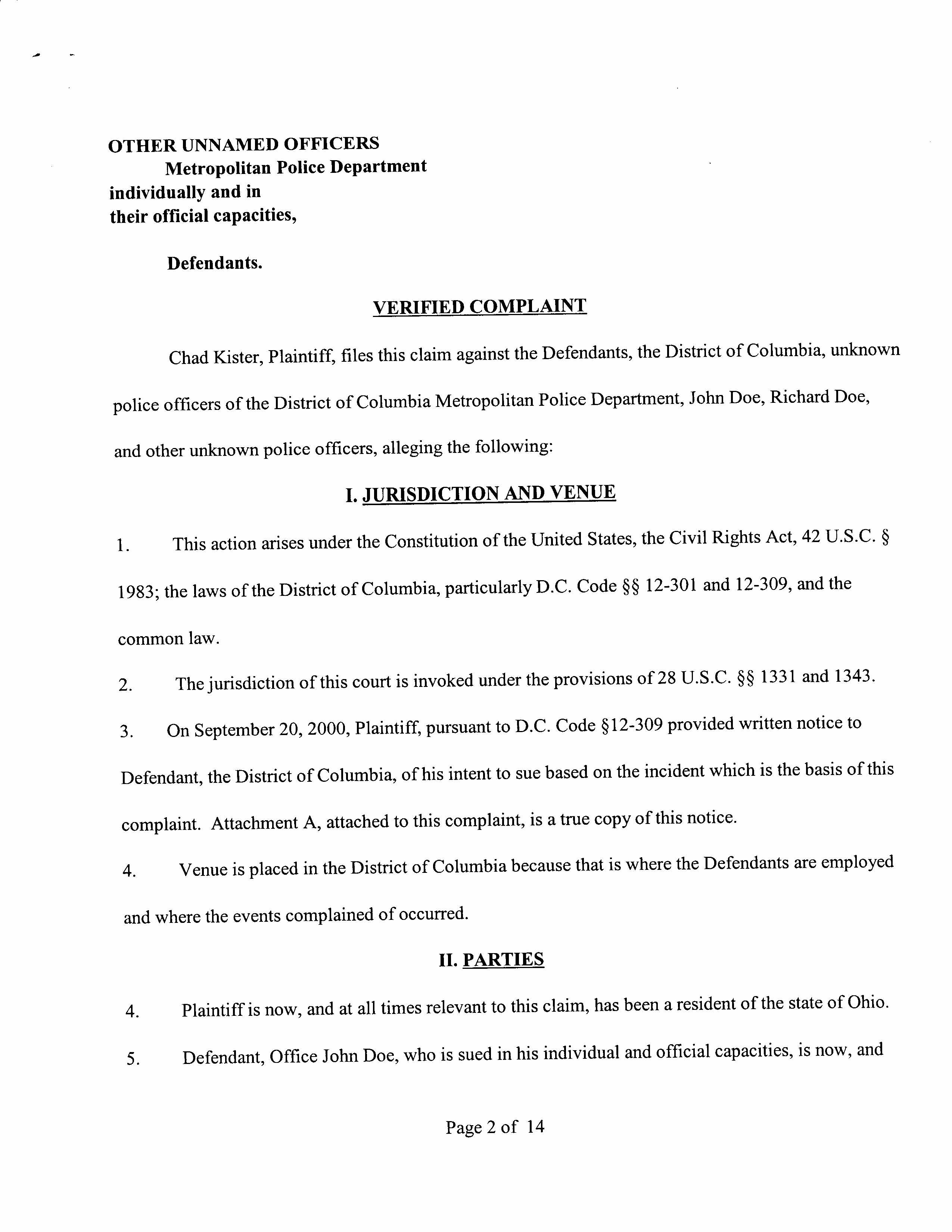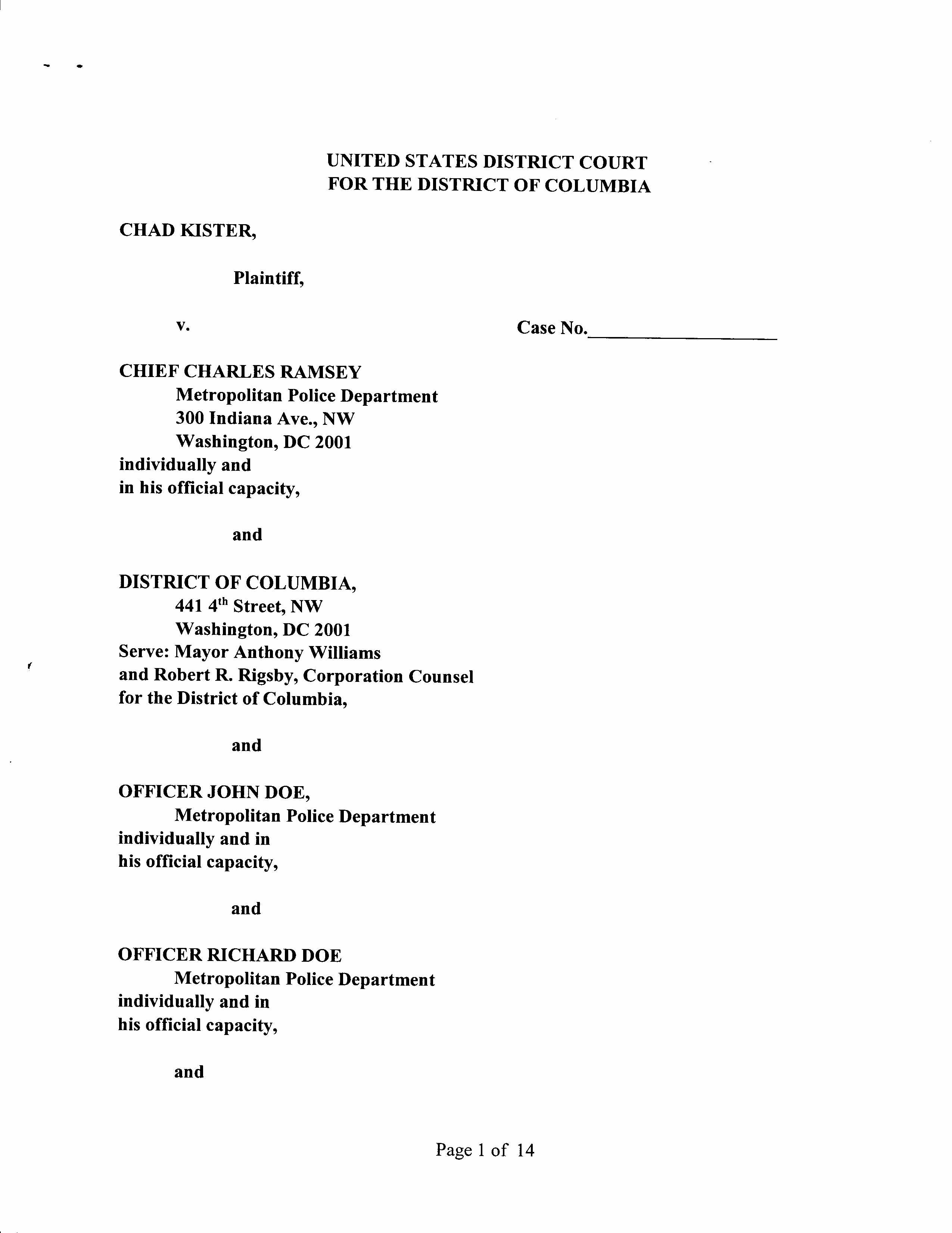 These are the documents for the lawsuit filed by Author and Film Maker Chad Kister against the Washington DC Metropolitan Police Department: