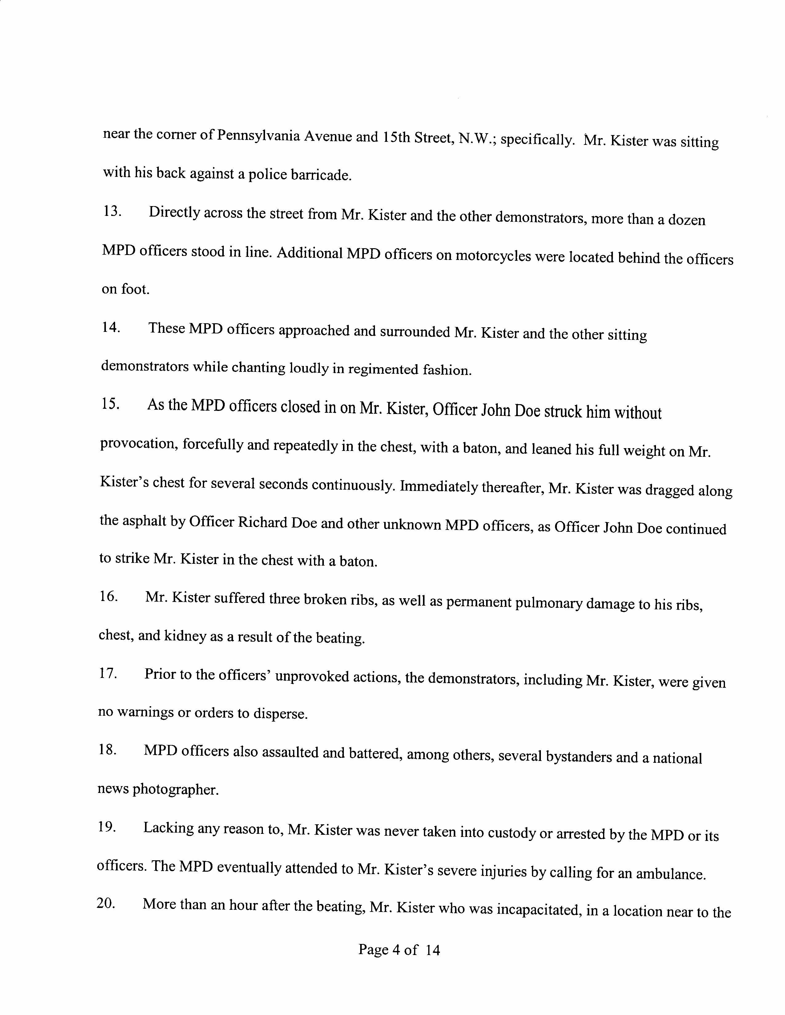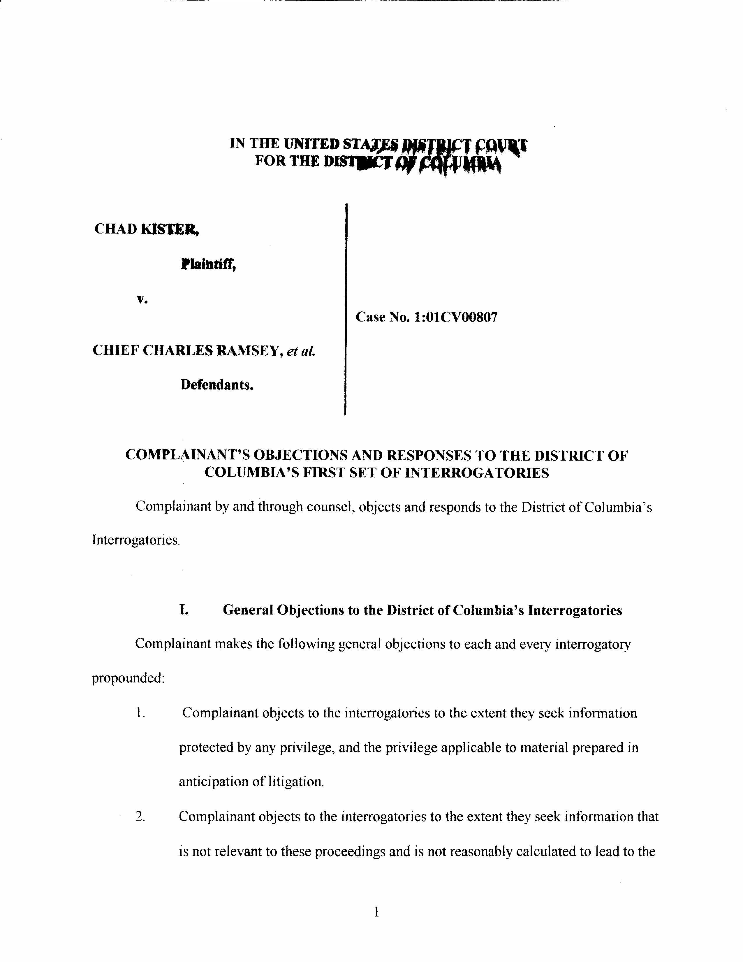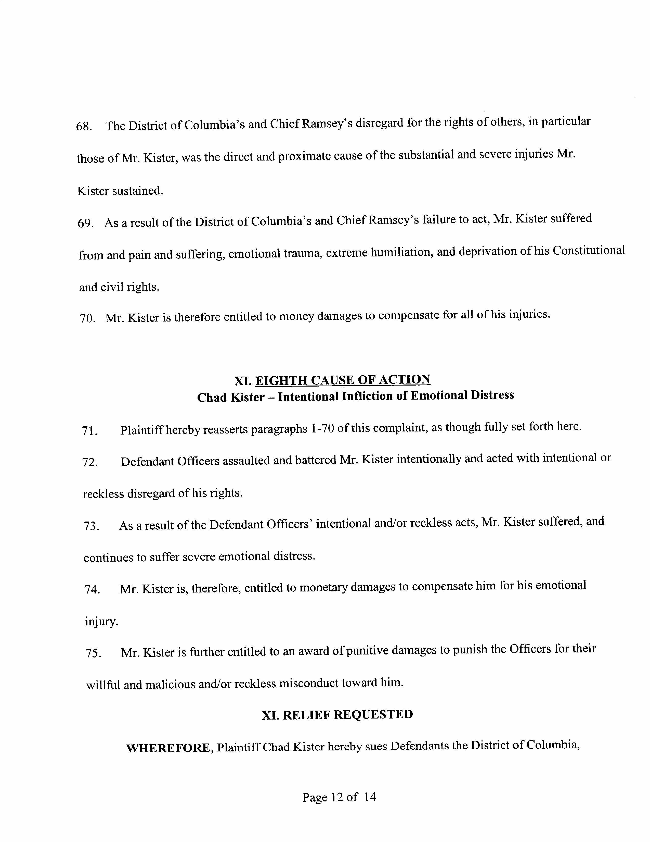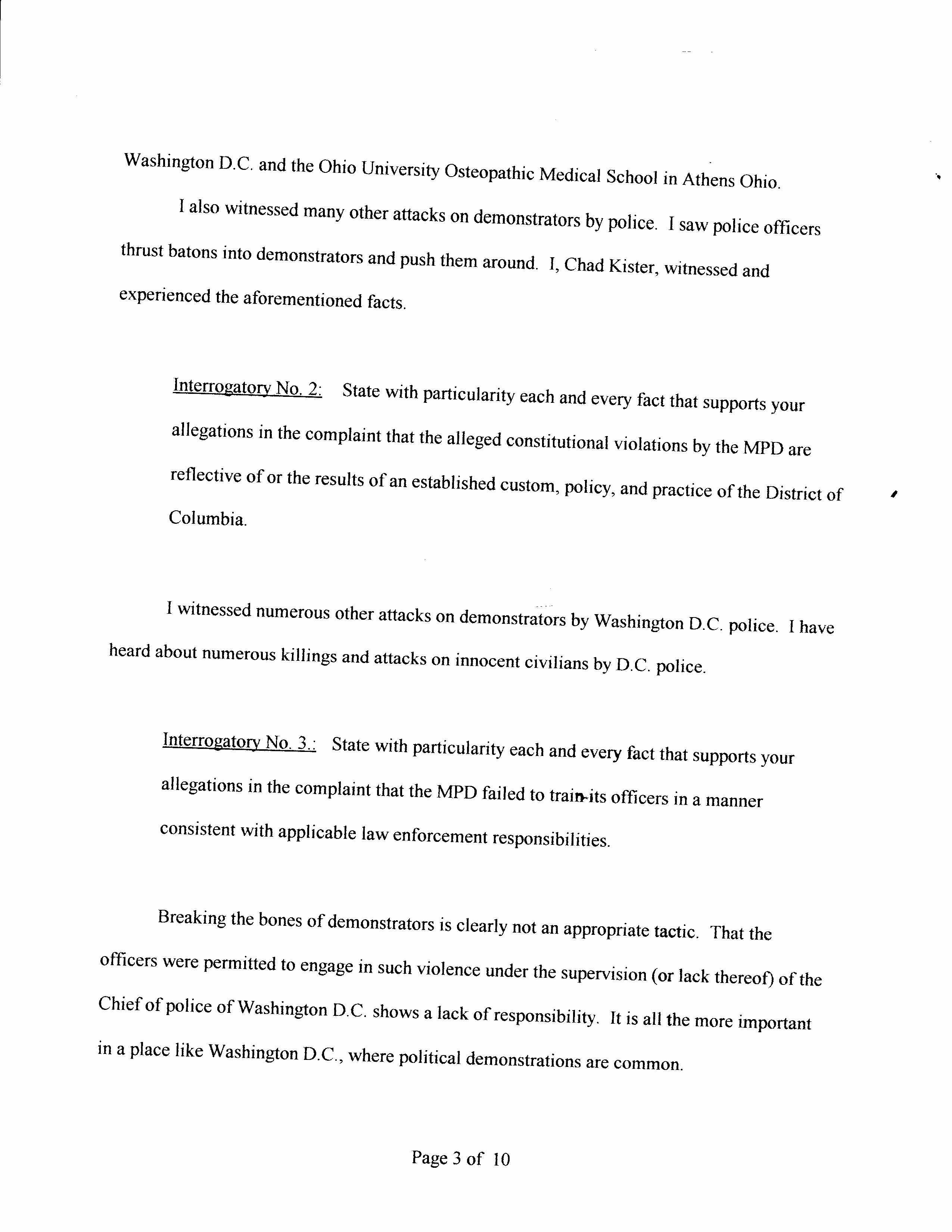 These are the documents for the lawsuit filed by Author and Film Maker Chad Kister against the Washington DC Metropolitan Police Department: