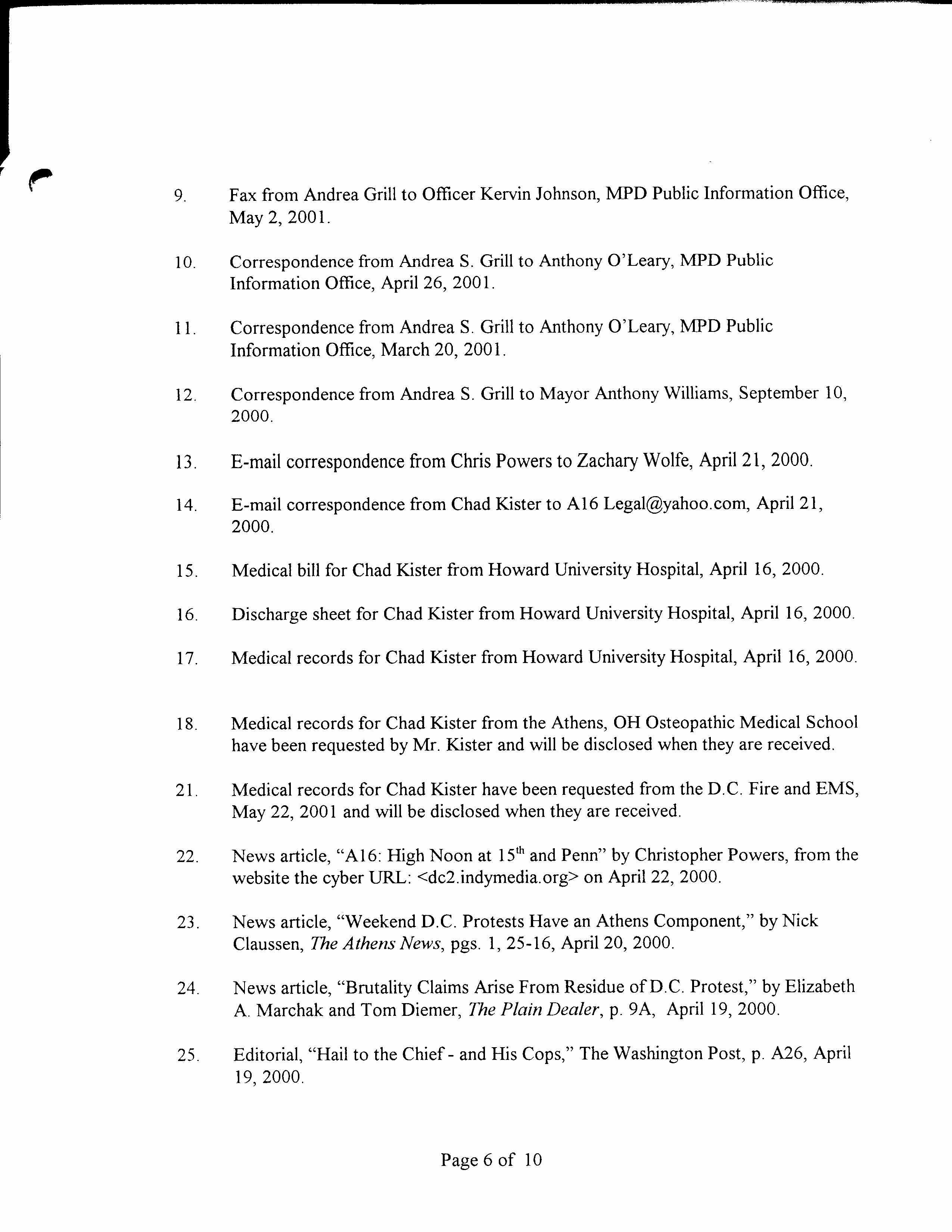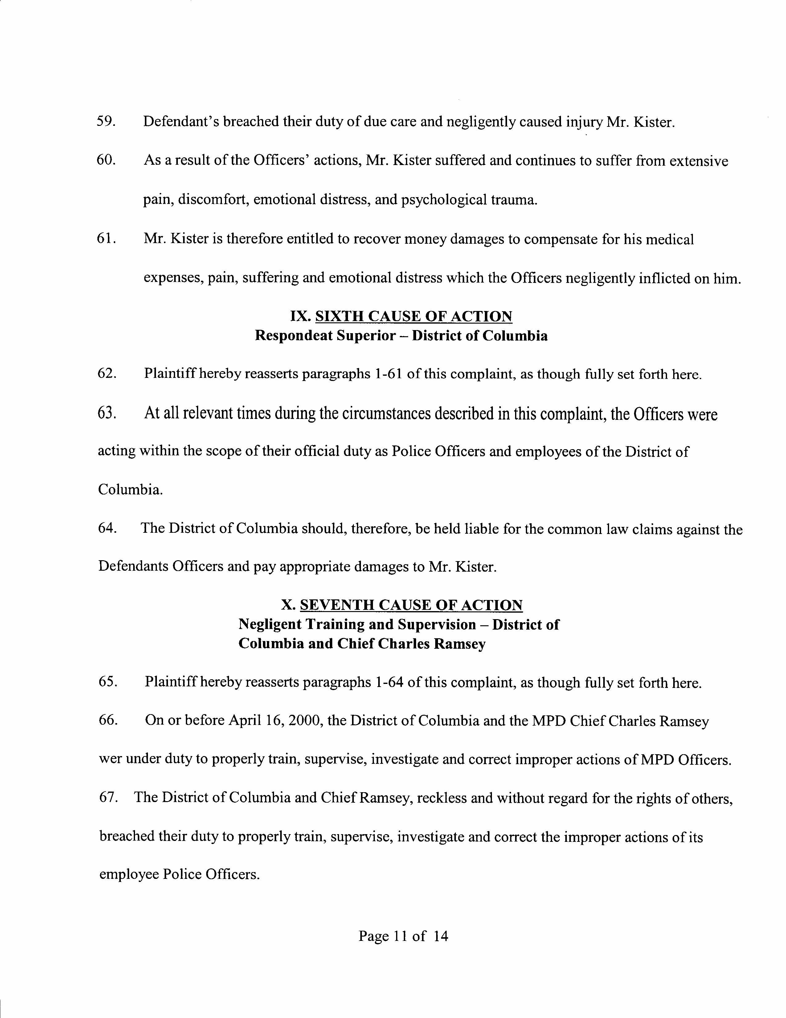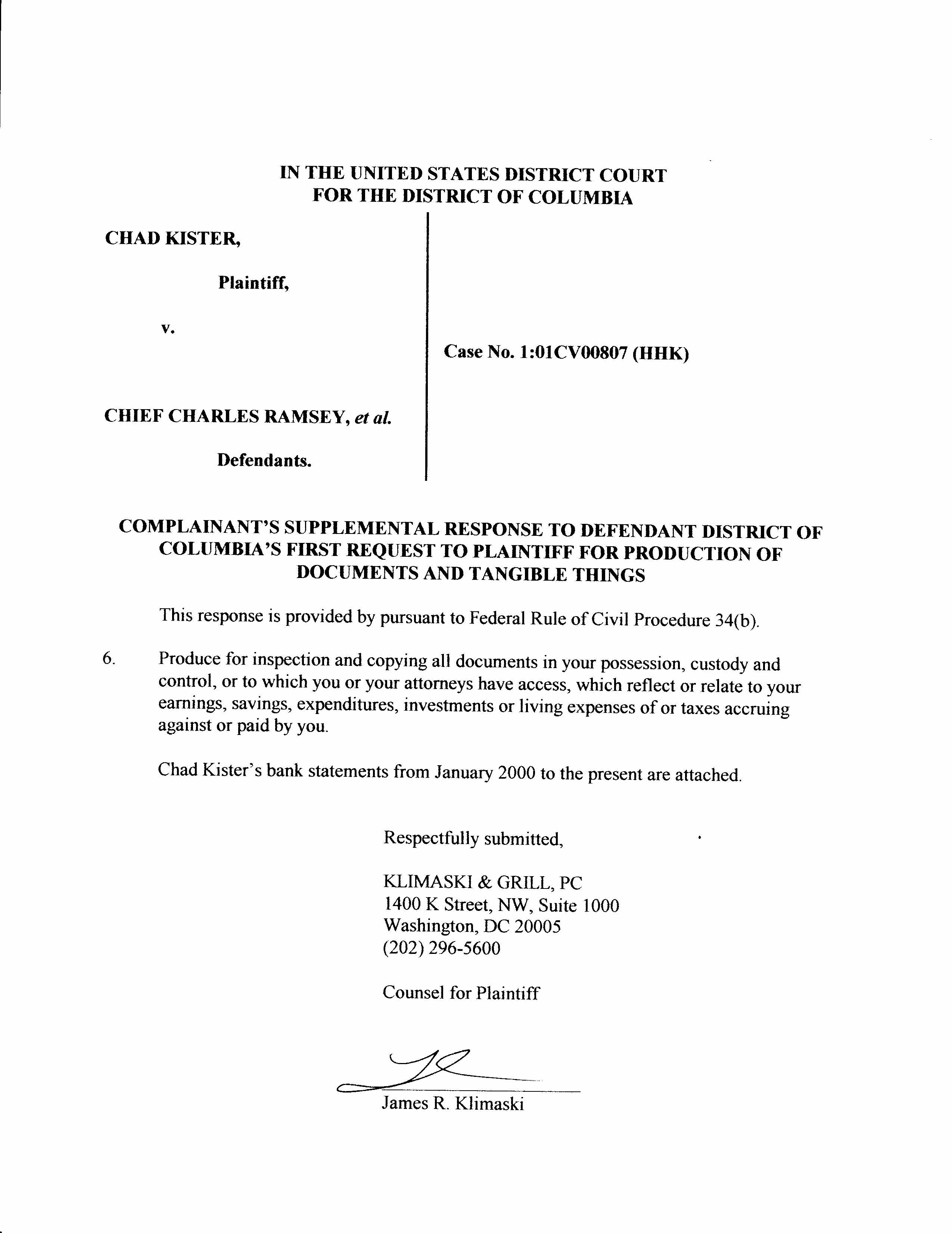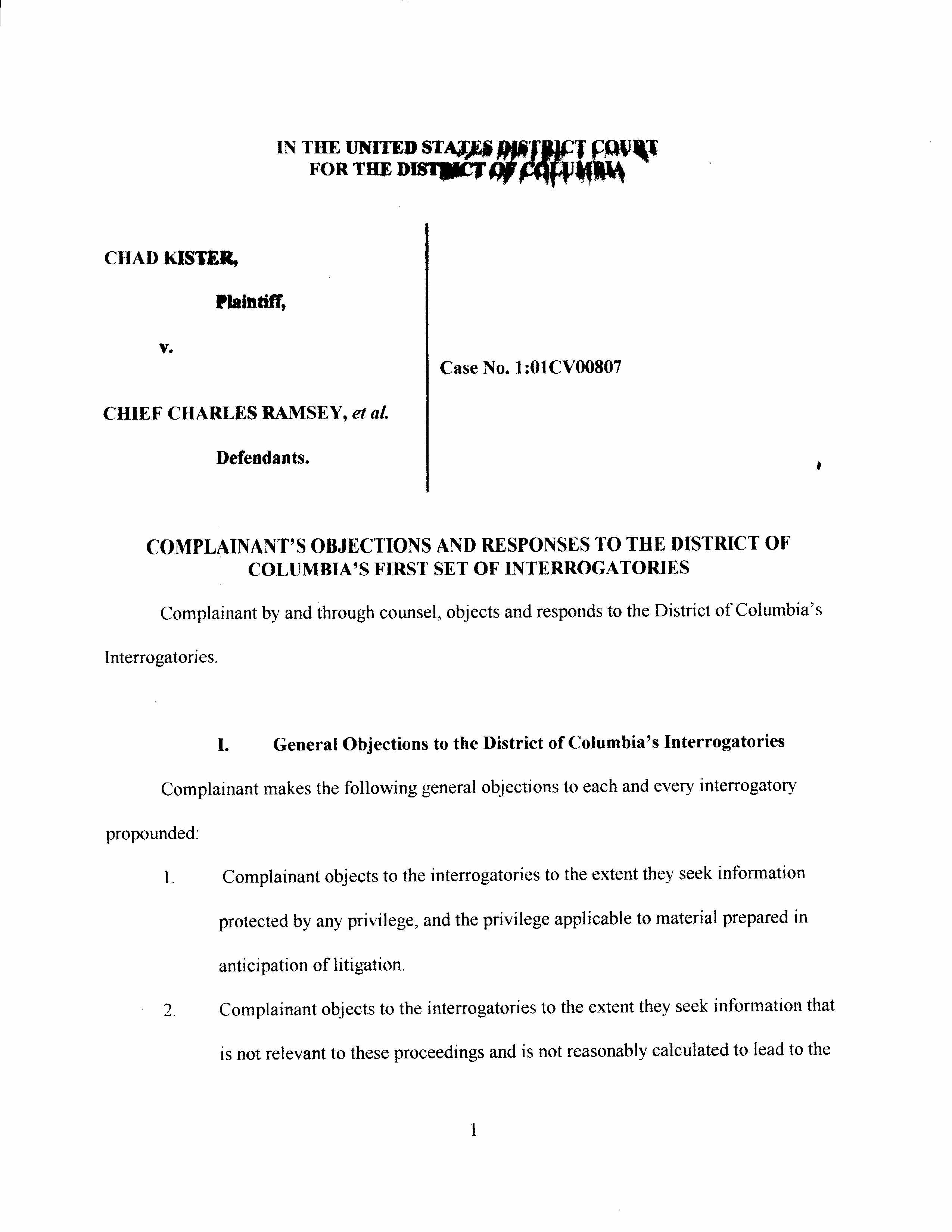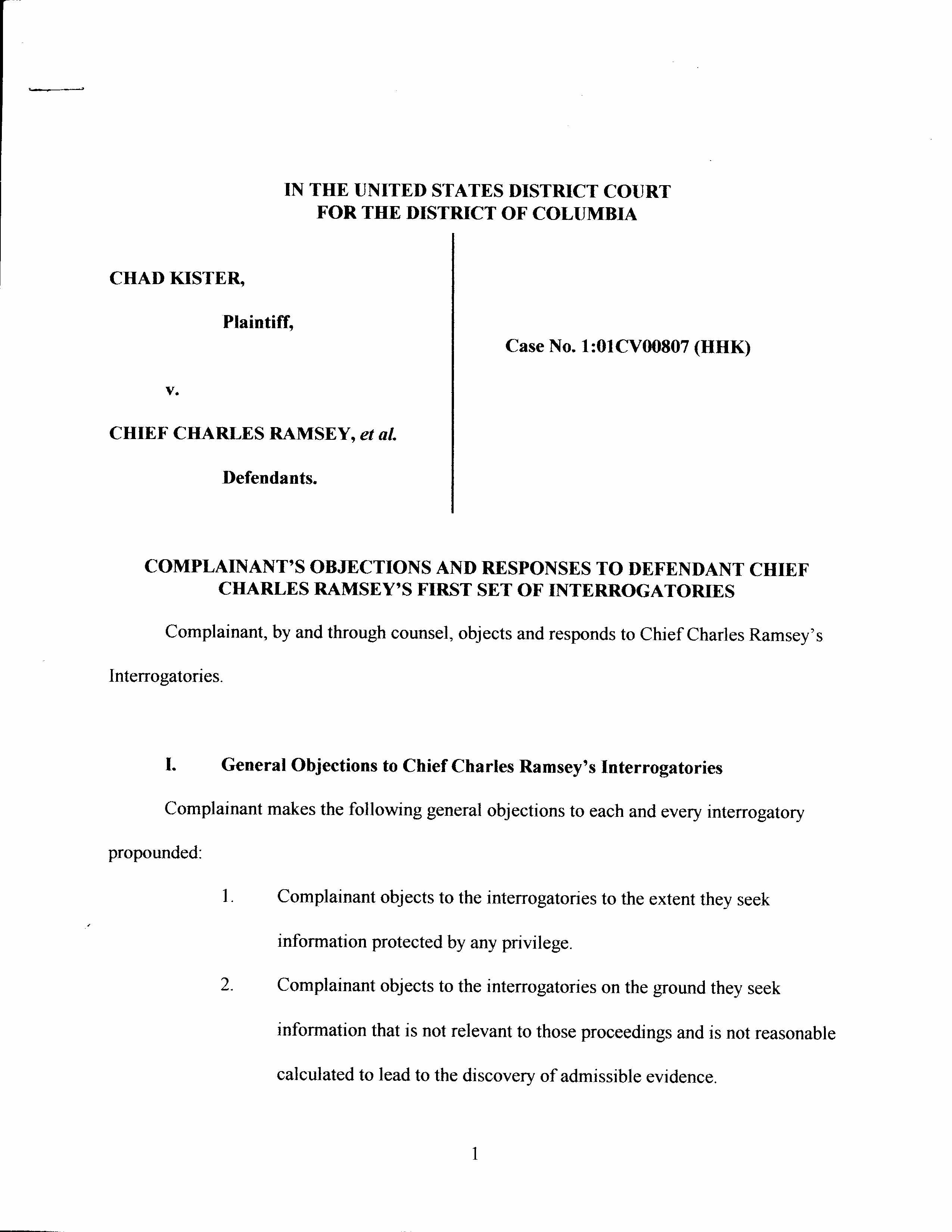 These are the documents for the lawsuit filed by Author and Film Maker Chad Kister against the Washington DC Metropolitan Police Department: