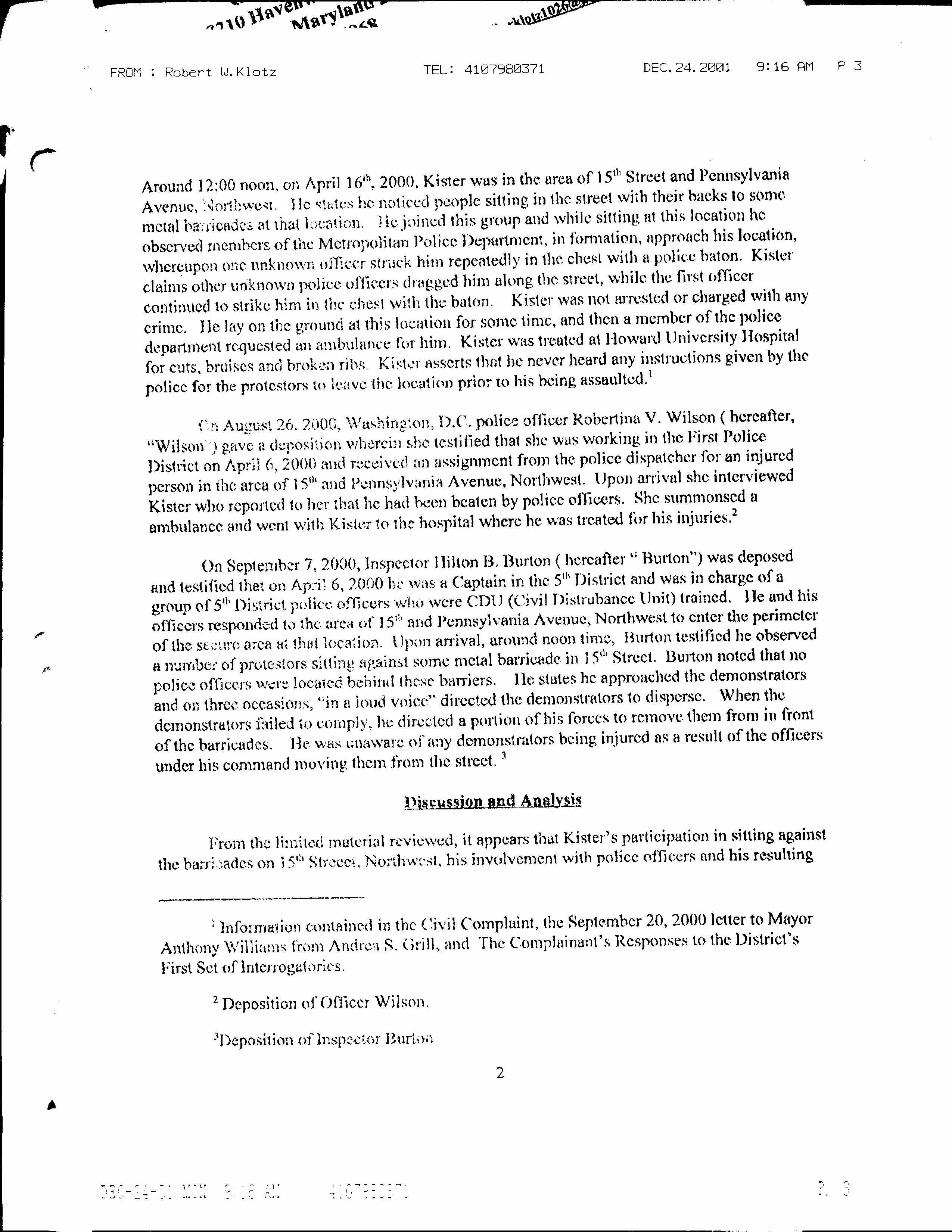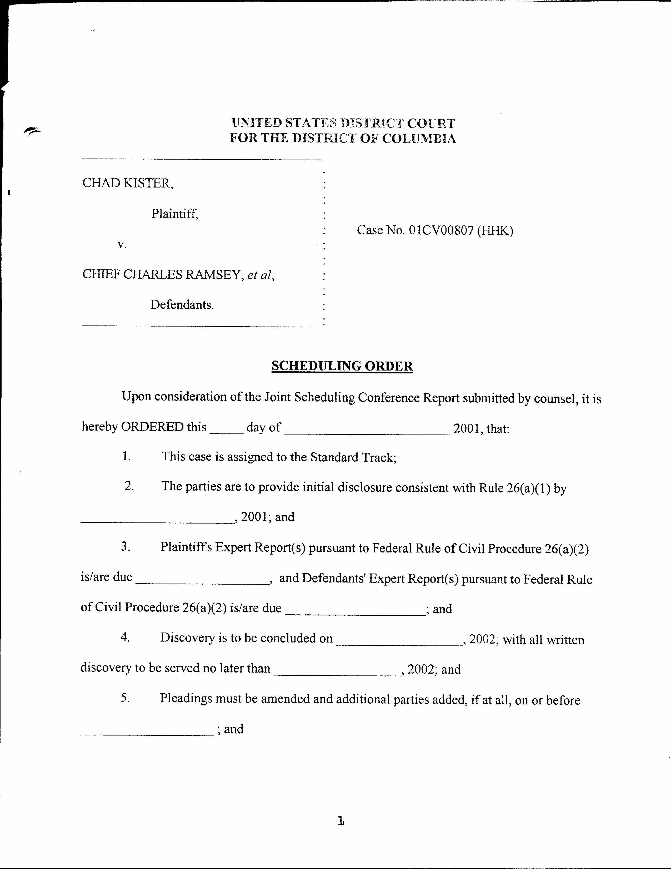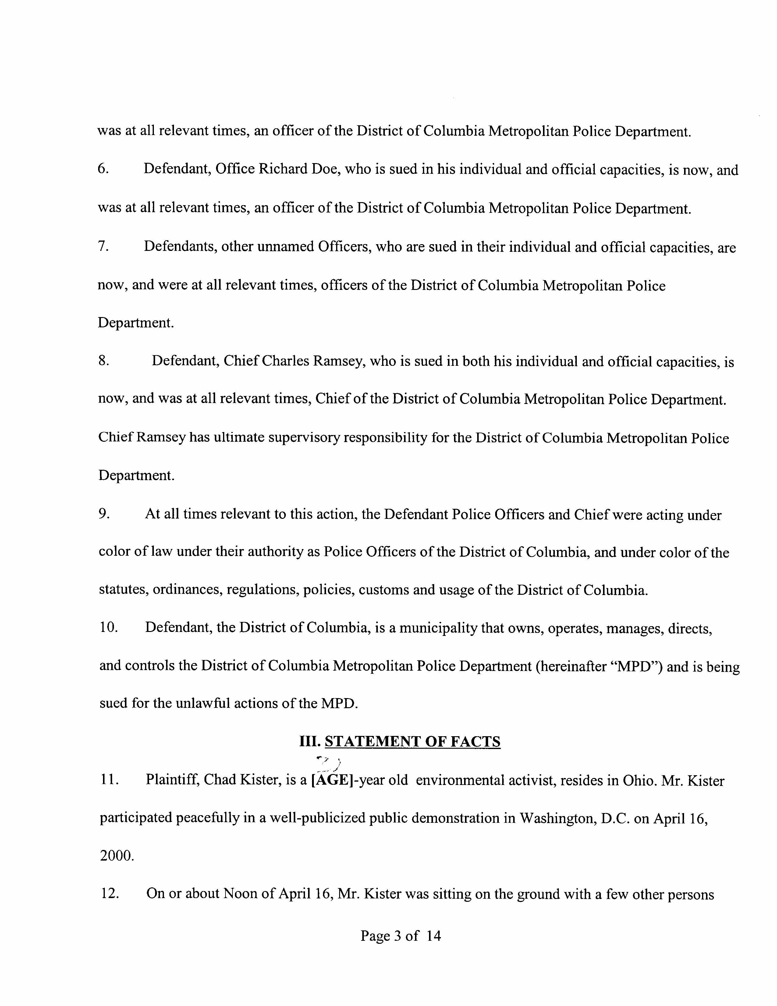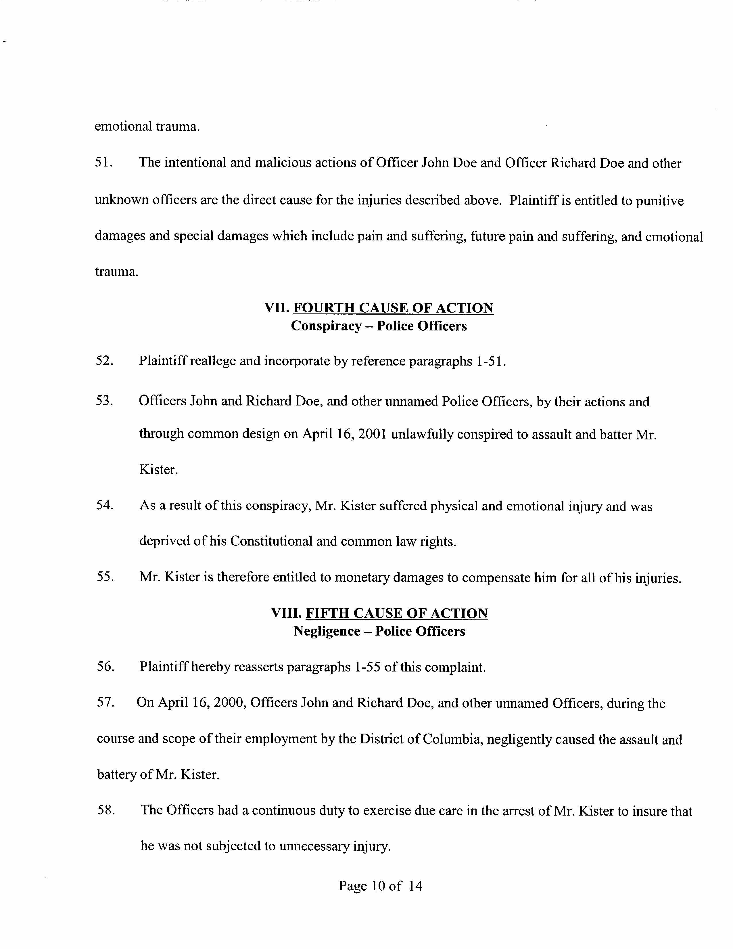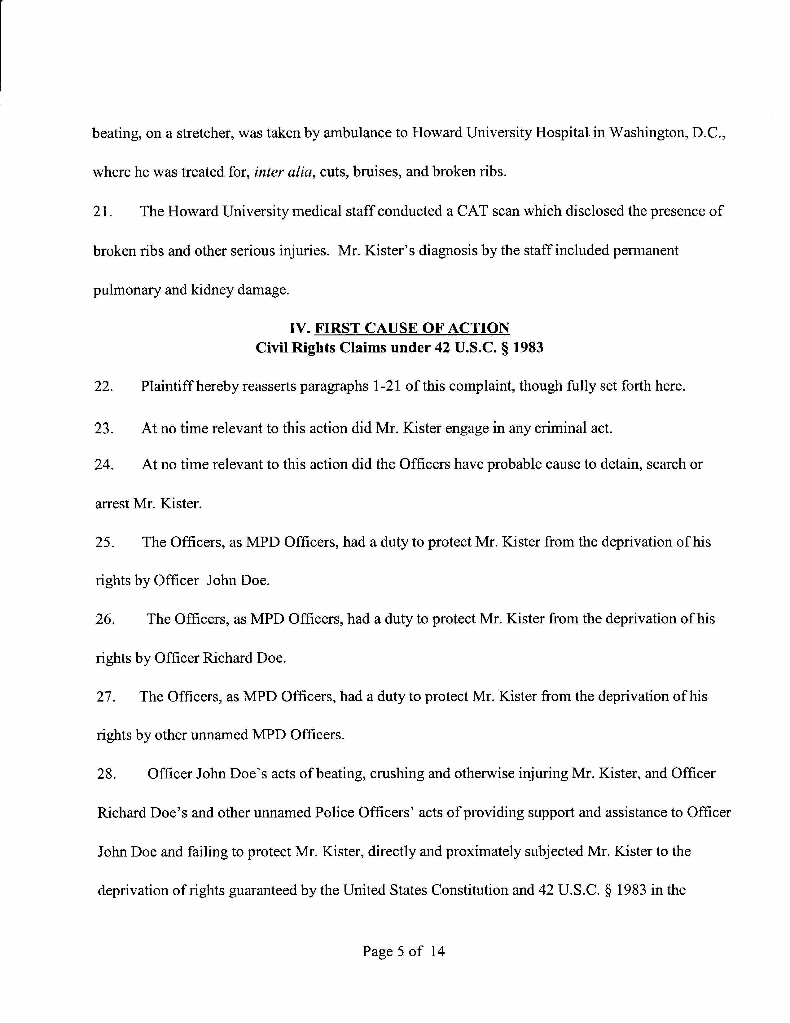 These are the documents for the lawsuit filed by Author and Film Maker Chad Kister against the Washington DC Metropolitan Police Department: